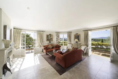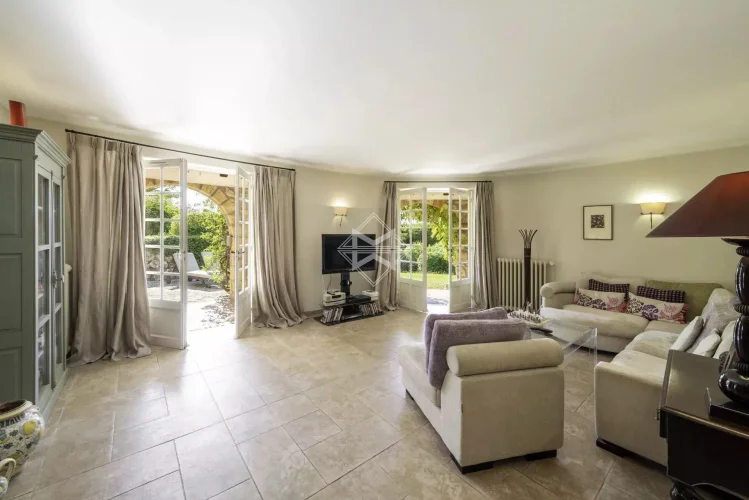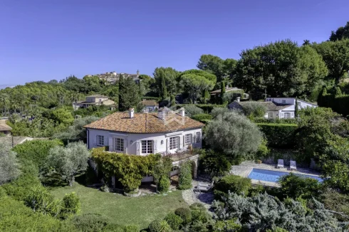This charming villa is ideally located just steps from the picturesque village of Mougins, renowned for its gourmet restaurants and art galleries. Nestled atop a lush garden, it offers panoramic views of the verdant Esterel hills and stunning sunsets.