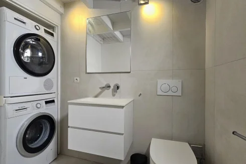 The flat enjoys a beautiful side view of the Coulée Verte and comprises a spacious 30 m² living room with an open-plan fitted kitchen, high ceilings and plenty of natural light thanks to three large windows, a sunny corner bedroom, a second bedroom, a walk-in shower room and a WC/laundry room.