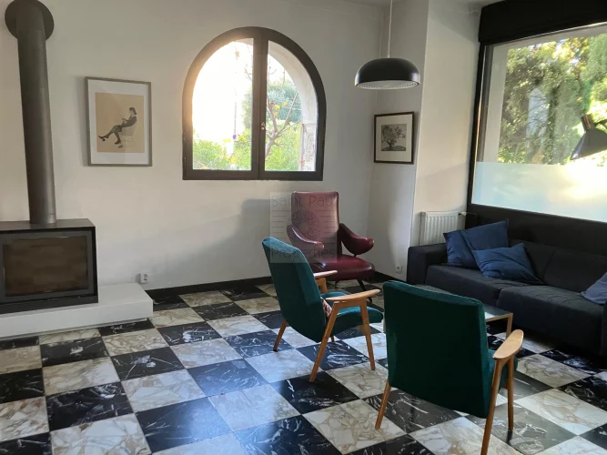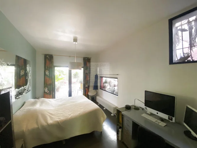 As soon as you enter, you will be seduced by this atypical house: the spacious hall opens onto a beautiful living space with a bright and friendly living room of 30 m2 (ceiling height: 3 meters), which communicates with a large semi-open kitchen which opens onto a pleasant wooden terrace, then an intimate and wooded garden. The parental area is on the same level, it is accessed by a few steps: separate toilet, bedroom of 13 m2 with direct access to the garden, shower room and large bright office. On the 1st floor, there is access to 2 large bedrooms (18 and 14M2) with balcony and loggia which share a large bathroom.