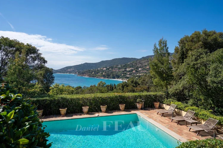 This elegant relatively recent property nestled in leafy grounds in the immediate vicinity of the beaches and the centre of Rayol-Canadel-sur-Mer commands an open view of the sea and the surrounding hillsides.