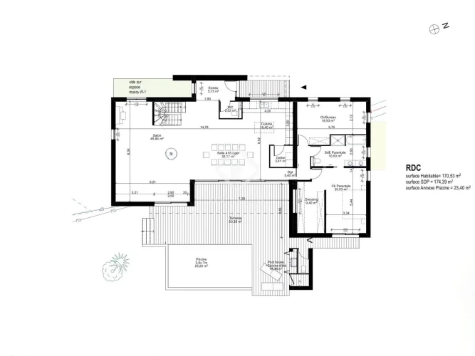 Lucas Fox International Properties, about ten minutes from Montpellier, in the heart of the village of Saint-Georges-d'Orques, sublime bioclimatic architect's villa under construction. Future villa of 326 m² located on a landscaped garden of 2,800 m² with swimming pool, pool house and terraces. The entrance, on the west side, opens onto a large living room of almost 100 m², with a large 8-meter bay window, with lounge, dining area and open kitchen. The spaces continue on the ground floor with a terrace, a garden and a swimming pool. There is also an office (or bedroom) on the same level, as well as a master suite with dressing room and bathroom. Upstairs, 4 large bedrooms of 20 m² share a shower room and a bathroom. This exceptional property of bioclimatic design will benefit from through exposures and a bucolic environment. In the basement, there is a large garage of 126 m², as well as a laundry area and a gym with its water feature. Obtain the complete file and more information from your dedicated agent, Sébastien Anglade Commercial Agent - Rsac n° Montpellier. Information on the risks to which this property is exposed is available on the Géorisques website: