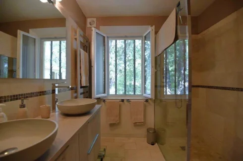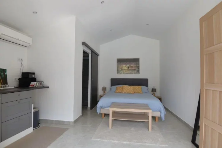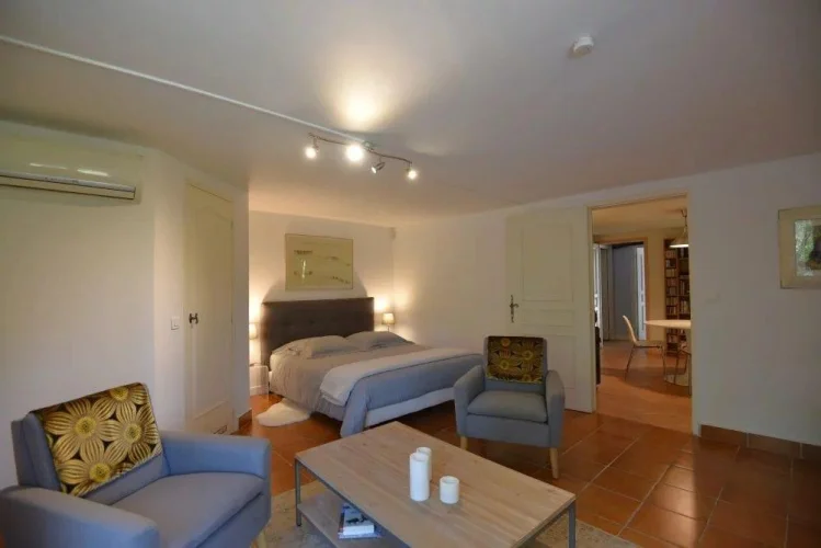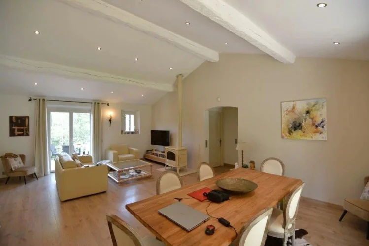 Near all amenities, villa of 172 m² comprising: on the ground floor, a spacious living room with an access onto the terraces, a fitted kitchen with a storeroom and an access onto a large covered terrace, two bedrooms and a shower room. On the garden level, a studio with a kitchen and a shower room, laundry, garage and cellar. An independent bedroom with a shower room. Swimming pool. On a land of 6800 m².