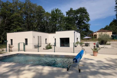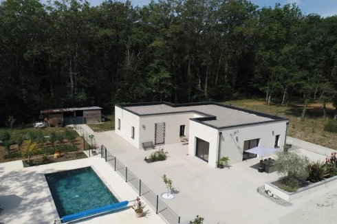 Located in a quiet area, in the charming town of Peyrilles, in the Lot department, discover this modern cubic house built in 2023, with quality services and contemporary design, all located on a magnificent wooded plot of 4944 m².