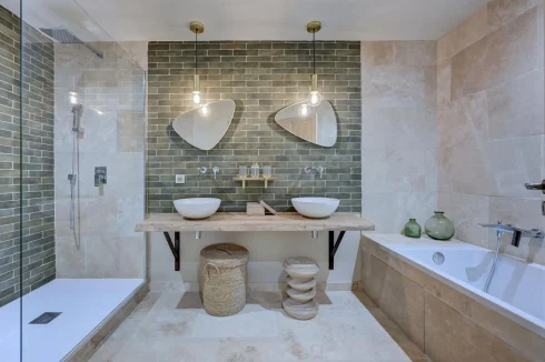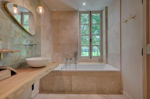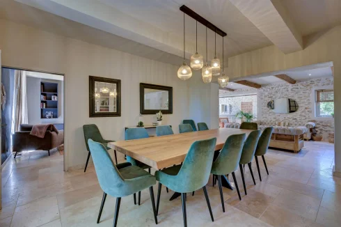 The outdoor spaces are superb, with large stone terraces, a heated swimming pool (16m x 4.50m) with an electric cover, a 100 sqm lounge area with garden furniture, a large covered terrace/summer dining area (90 sqm), a barn, a garage for several vehicles, and a pétanque court.