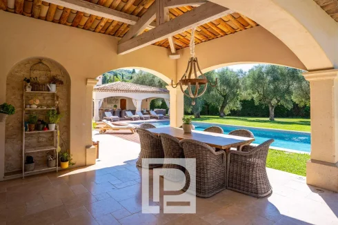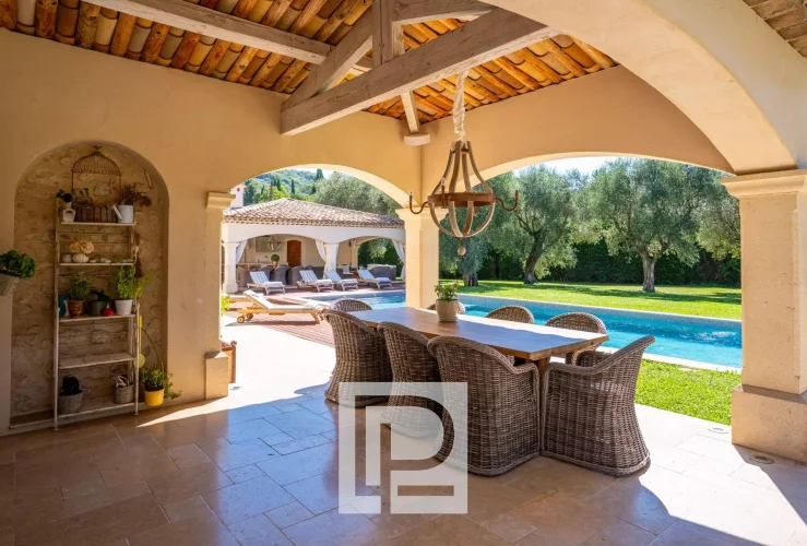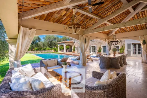 Nestled in a preserved natural setting at the gates of Mougins, free from any disturbance yet close to all amenities, this 19th-century stone mas impresses with its authenticity, generous volumes and unrivalled serenity. Carefully renovated a few years ago, it combines the charm of the past with modern comfort to perfection.