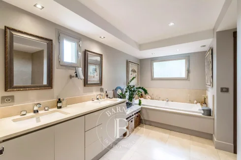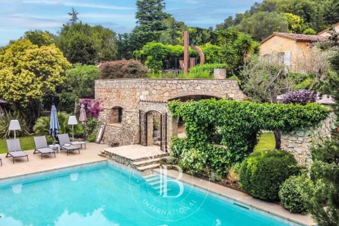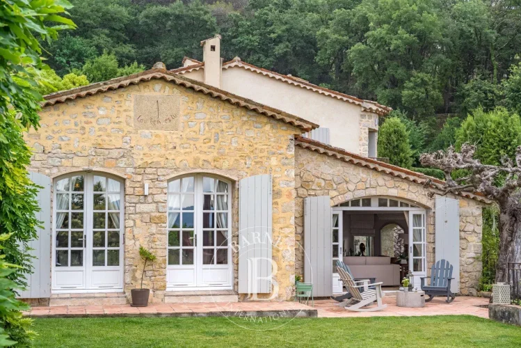 Set at the end of a cul-de-sac in absolute peace and quiet, with lovely unobstructed views, this magnificent, charming property combines stone and modern comforts and was completely renovated 15 years ago. Set in 2200 sq.m of enclosed grounds offering a variety of relaxation areas as well as lovely views of the countryside and hills, this 19th century house has evolved over time and now offers a total surface area of around 350 sq.m: an entrance hall, a double living room with a fireplace/library area and sitting area opening onto the garden, a charming dining room with exposed beams and a fully-equipped separate kitchen, as well as an en suite bedroom with its own shower room on the ground floor. Upstairs is a spacious master bedroom with dressing room and bathroom. On the garden level, there are two en suite bedrooms, one of which could be used as an independent studio/apartment. Finally, there is a fifth separate guest bedroom with shower room. The garden offers two main levels of very charming spaces, an equipped pool-house, a superb marble swimming pool and various play areas for children. Double carport and parking for several additional vehicles. A haven of peace!
