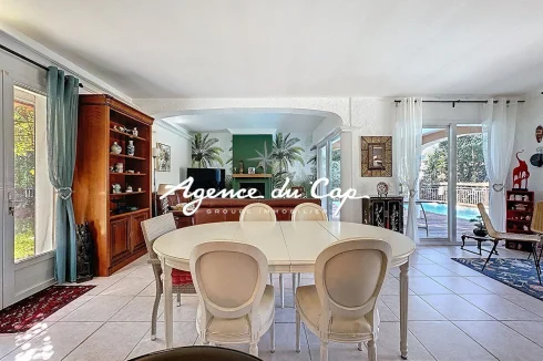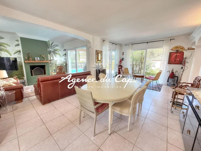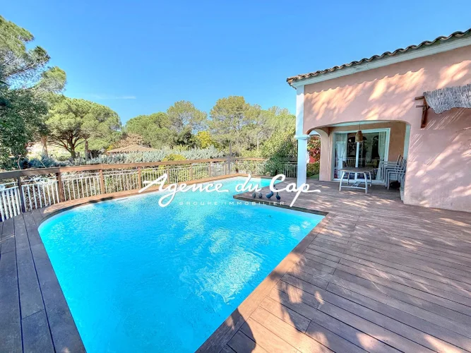 Located in the highly sought-after area of the Golfs de Valescure, beautiful 5-room villa of 140 m², quiet and in a green environment. This house consists of an entrance hall giving access to a brand new fitted kitchen and a pleasant living space with living/dining room opening onto a sunny terrace with salt pool.