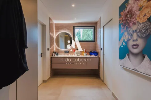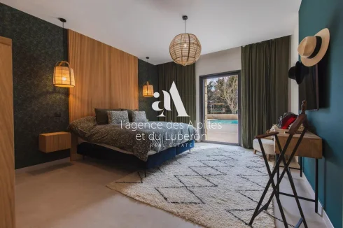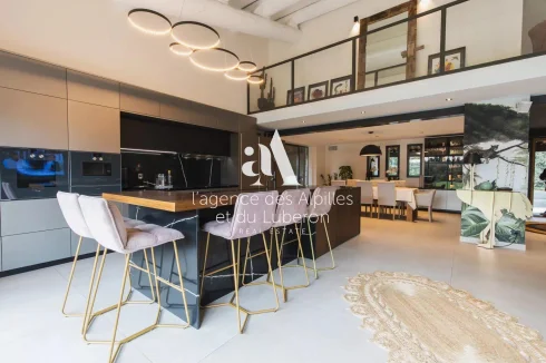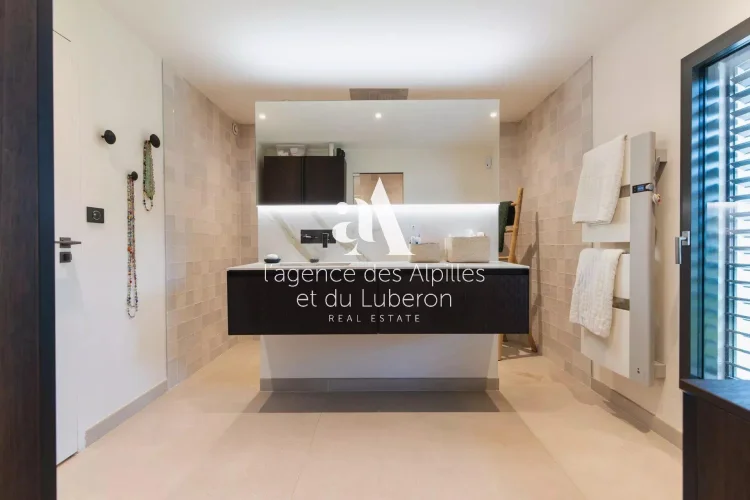 Sole agent. Located just 5 minutes from the Tgv train station, close to the village and in a peaceful setting, this magnificent contemporary villa is sure to please even the most discerning buyer. It boasts top-of-the-range features and refined decoration, offering an exceptional living environment. The first floor features a spacious living room with open-plan fitted and equipped designer kitchen, dining room, bright living room with town gas fireplace, laundry room and separate toilet. A master suite with dressing area and shower room, a bedroom with direct access to the garden and a second bedroom en suite complete the space. The first floor is organized around a central passageway serving an office and two en-suite bedrooms. The property includes numerous outbuildings: an attached garage with attic for storage and, on the garden side, the pool house, a real living space, with its fitted kitchen, living room, dining room and shower room. The pool is heated, has counter-current swimming and a pool house. A tennis court is located to the rear of the villa, as is a carport. The property is set in approx. 7,000 m2 of landscaped grounds with automatic watering and lighting.