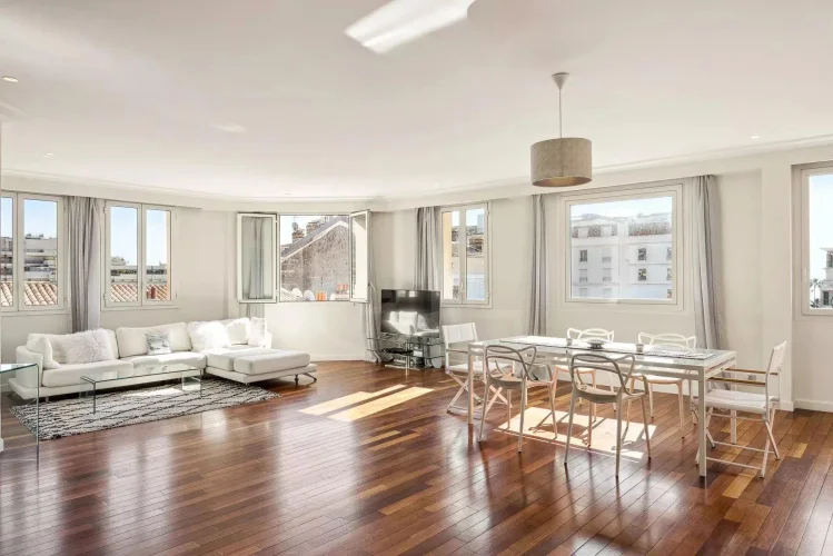 Nestled in the heart of Cannes, between the iconic Croisette and the lively Rue d'Antibes, this exquisite four-room apartment occupies the top floor of a sought-after building, offering both privacy and a prime location just steps from the Palais des Festivals. With an expansive 127 m² of living space, the apartment exudes a refined blend of contemporary design and timeless elegance, making it the perfect retreat for those who appreciate both luxury and convenience.