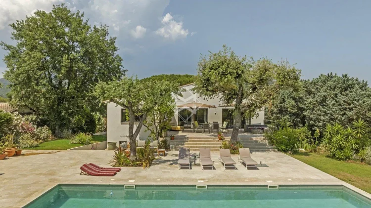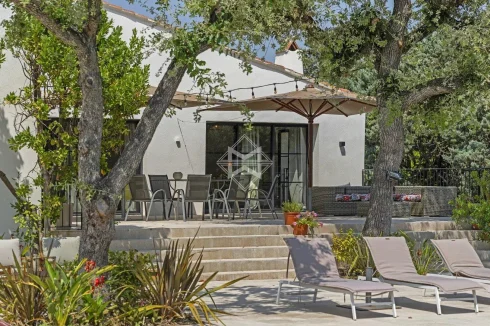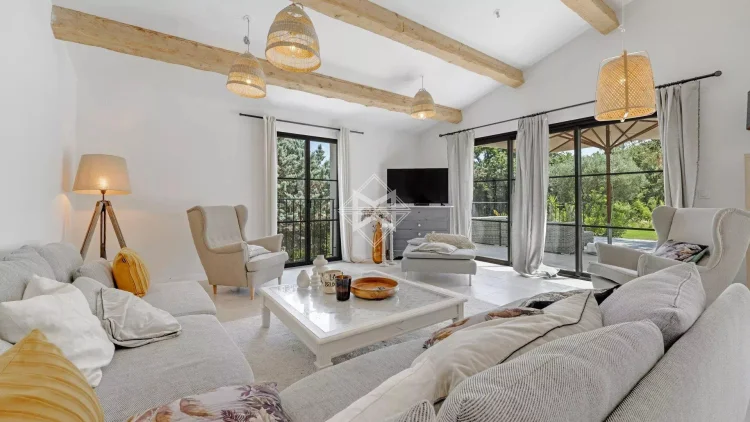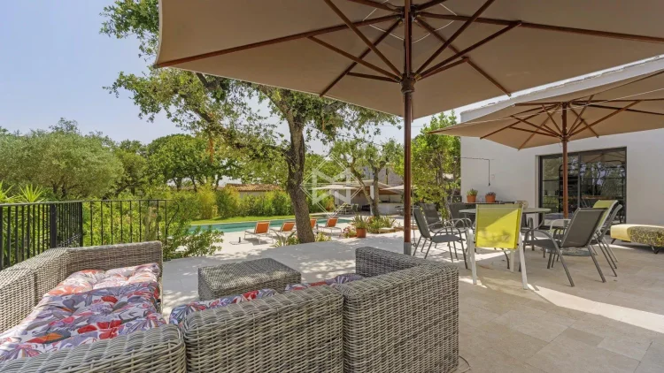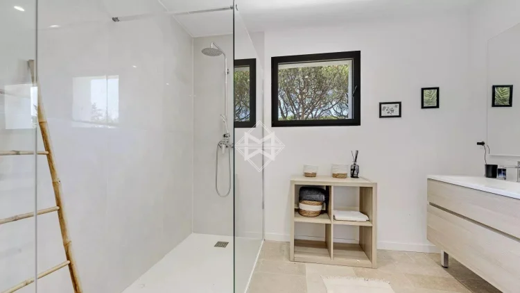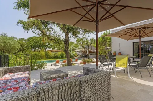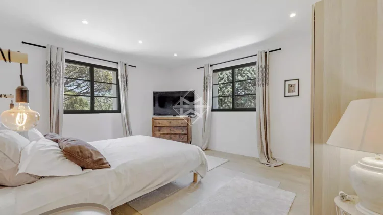Nestled within a private and secure estate in Grimaud, just a 6-minute drive from the beaches, this stunning villa offers a dream setting for a holiday on the French Riviera. Designed to comfortably accommodate up to 12 guests, the house features 6 spacious bedrooms, each with its own en-suite bathroom, ensuring both comfort and privacy for everyone. The living areas include a cosy lounge dedicated to reading and relaxation, as well as a large, light-filled living room with a dining area and open-plan kitchen — ideal for sharing special moments with family or friends.
