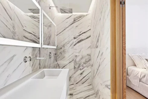 The 120 m.sq apartment comprises a living room with fitted kitchen, laundry/storage room, 3 en suite bedrooms including a master bedroom with dressing room. The living room opens onto the 70 sq.m terrace with summer kitchen.