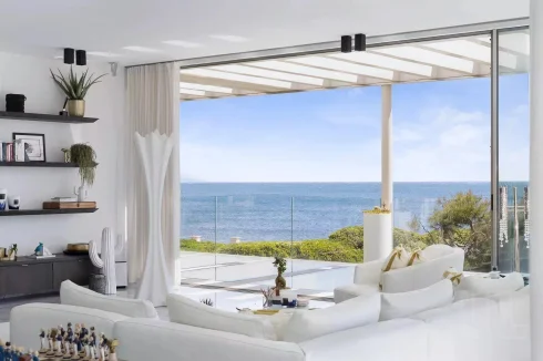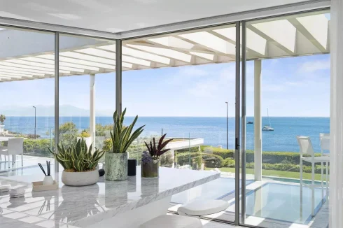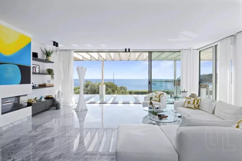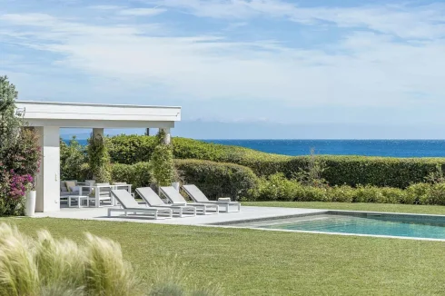 The exterior is equally impressive. The landscaped gardens host a stunning swimming pool alongside a stylish summer lounge and fully equipped outdoor kitchen ideal for entertaining against the backdrop of sea views and Mediterranean skies.