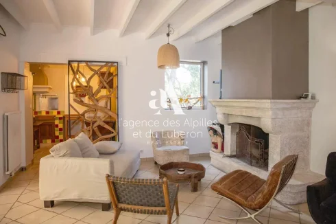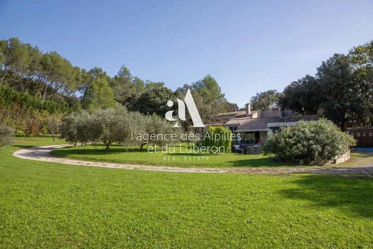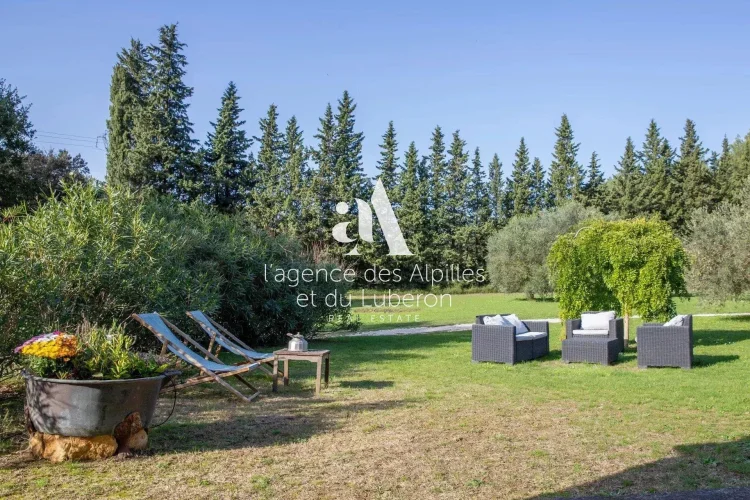 For sale in Grans. For nature lovers, nestled a few minutes from the Alpilles and close to all amenities, pretty contemporary Mas on a plot of 8,500 sq.m, planted with oaks and olive trees, with a swimming pool and a pool house.