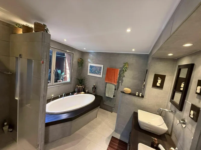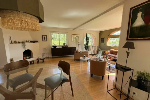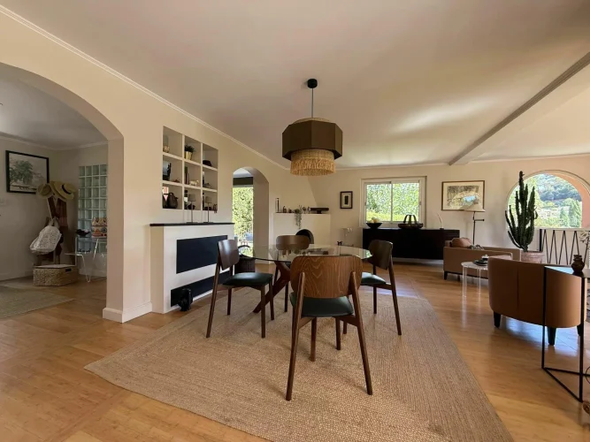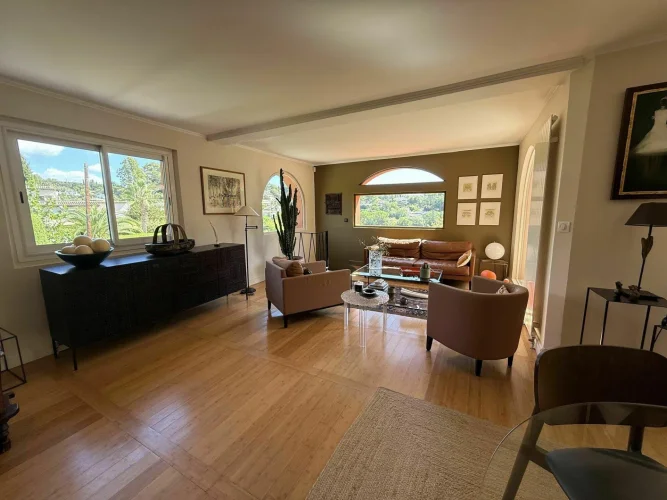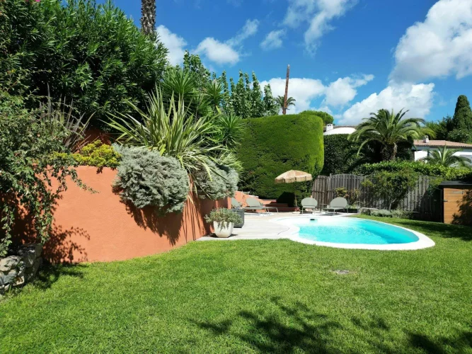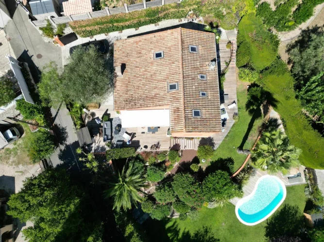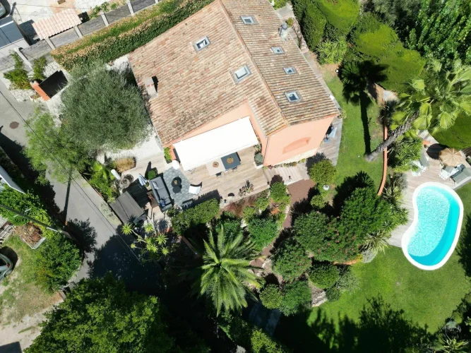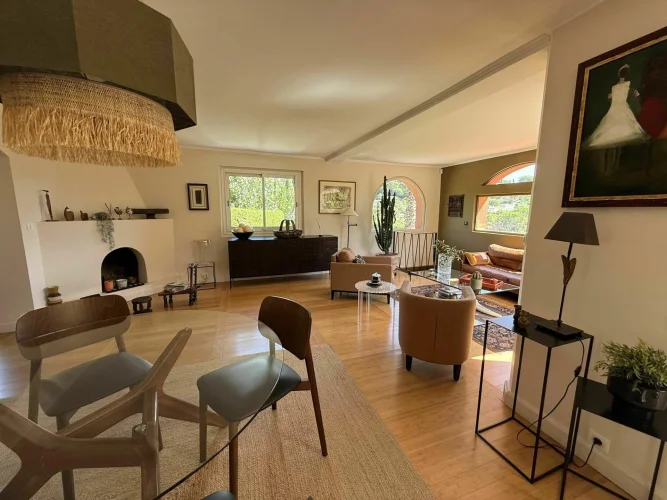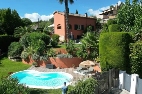 Mougins : residential area, quiet, close to all amenities, beautiful Provençal villa, offering : entrance hall, large and bright living/dining room with fireplace, fitted kitchen, 4 bedrooms and 3 bathrooms. Convertible playroom, bedroom, laundry room and cellar. Land of approximately 978 m² with beautiful swimming pool area. Parking lots.