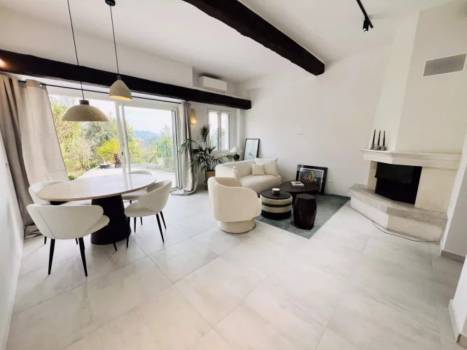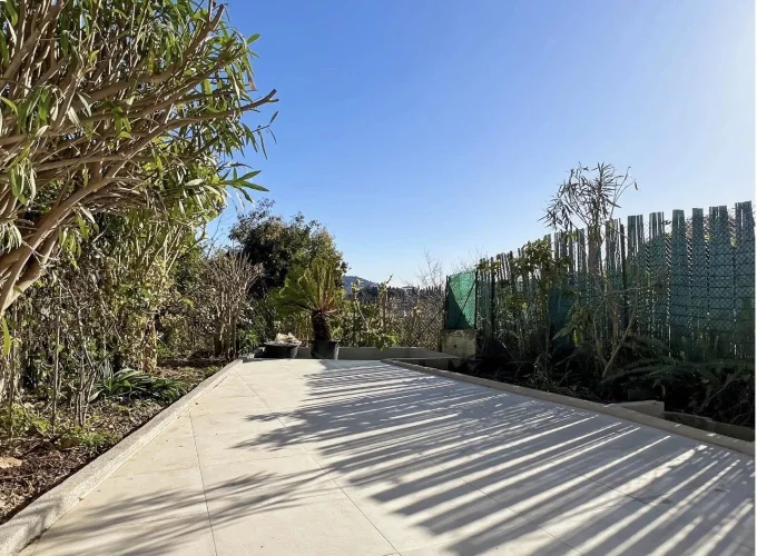 Though part of a semi-detached house, this property offers all the advantages of a luxurious apartment, set within a unique, private, and secure domaine with a guardian, ensuring a calm and carefree lifestyle. Surface area of aprox. 100M², this property composed of a spacious, light-filled living room with a dining area, a functional modern kitchen, and three comfortable bedrooms. The large terrace of aprox. 60M², a true haven for relaxation, offers an unobstructed view of the sea and the city, ideal for peaceful moments of tranquility. The garage, currently used for storage, can easily be converted into an extra bedroom or any other space to suit your needs. Moreover, additional customized renovations can be made to fulfill your specific requirements.