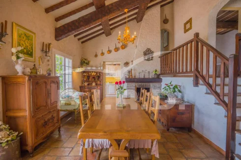 It comprises a spacious double reception room, a fitted kitchen and a ground-level terrace overlooking the swimming pool.