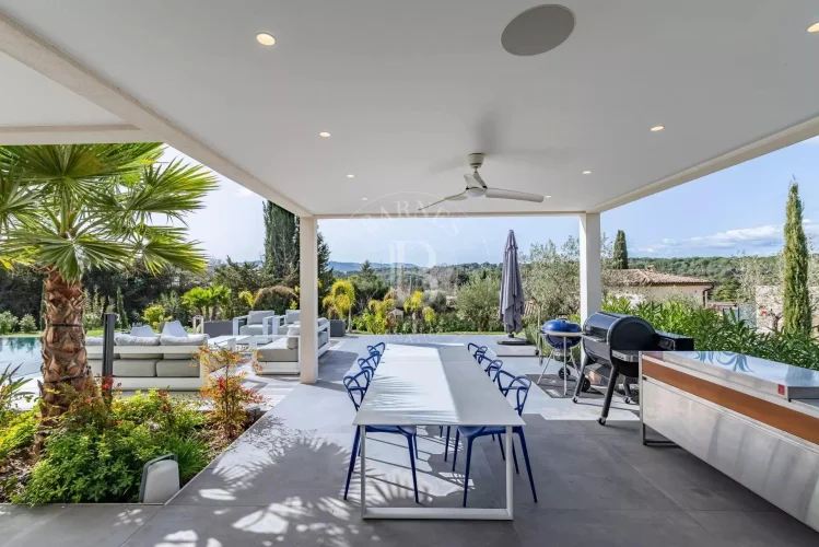 Close to all amenities, this superb contemporary villa of approximately 340 s.qm, located in a peaceful environment in Mougins, offers a clear view and benefits from a south-west exposure.