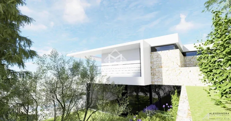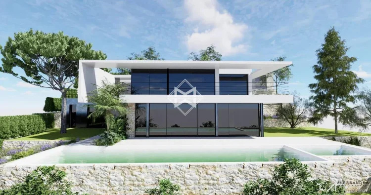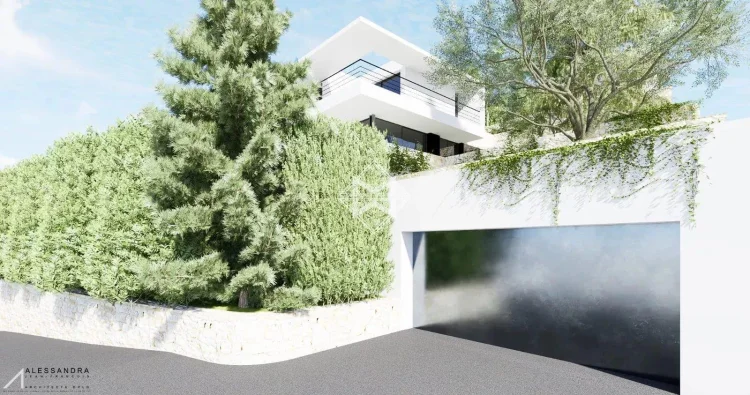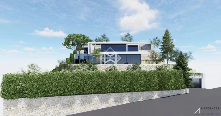 This property, covering approximately 250 m², is offered for sale with a validated and cleared building permit for the construction of a contemporary flat-roof villa of around 350 m², spread over two levels: ground floor and first floor. Additionally, there is an 84 m² basement designed to include a wellness area with a Spa, a cinema room and/or a gym, as well as a spacious 138 m² garage, bringing the total usable area to 572 m². All three levels of the house are accessible via an elevator. The permit also includes plans for an 18-meter infinity pool at the front of the villa, along with a garage that can accommodate up to five vehicles.The property enjoys an exceptional setting with breathtaking panoramic sea views, in a quiet and very private environment. It is fully south-facing, ensuring optimal sunlight throughout the day. Agency fees payable by vendor