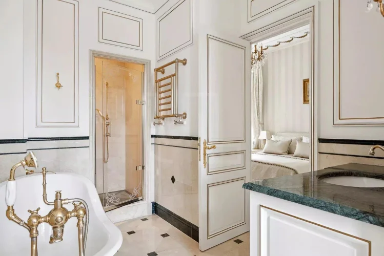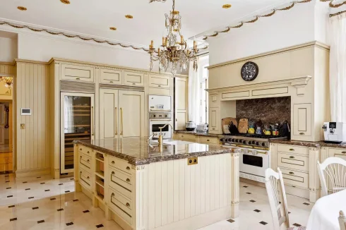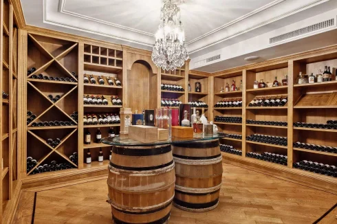 The 631 sq.m main villa was built at the beginning of the 20th century for an English lord, combining historical charm with modern amenities. It comprises a grand entrance, a fully equipped kitchen, a spacious dining room, a bright living room, tv lounge, large office, games room and 7 en suite bedrooms including a sumptuous master bedroom with a dressing room and a large terrace with stunning sea views. The basement offers a true wellness area with a sauna, hammam, shower, gym, jacuzzi, a large wine cellar and a champagne cellar.