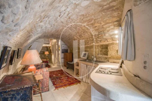 A flat with independent access is also available, including a kitchen of 30m² and a bedroom with shower room of about 23m², integrated into superb vaulted rooms. Several outbuildings complete the house, such as a cellar and a former monastic cell of 6m².