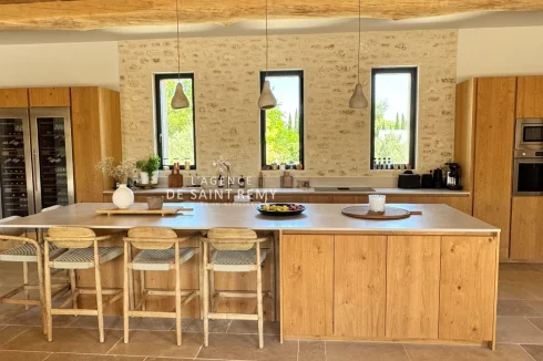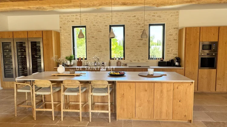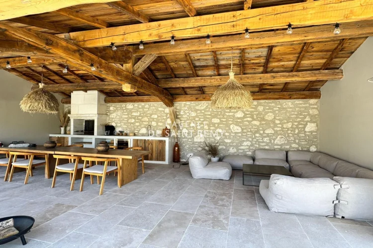 Exclusively at the Saint Rémy Agency, located in the tranquil heart of Saint Rémy de Provence, this house offers not only a superb view but also all the charm of a renovation carried out with quality materials. The impressive volumes of each room, and more particularly the living room with its antique wooden ceiling and stone floor, create a warm and welcoming atmosphere. This includes a master suite of over 68 m² as well as two other en-suite bedrooms. Upstairs, you will find two additional bedrooms with their own bathrooms. The garden level is dedicated to relaxation and entertainment with a gym, a living room, a wine cellar, and a cinema room equipped with specialized equipment. A laundry room and storage area complete this ensemble. The 1640 m² garden includes various carefully landscaped spaces. You can enjoy a fabulous 60 m² pool house with a fireplace, or relax on the shaded terrace decorated with a trellis. Outdoor lovers will also appreciate the beautiful terrace adjoining the master suite, the bowling green, the 11x4 swimming pool, the fountain, the carport, and the stone walls that add extra charm to the whole. Every corner of this property has been designed for your pleasure and comfort. Come discover this exceptional setting without further delay.