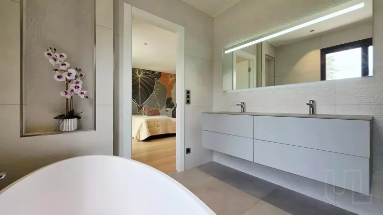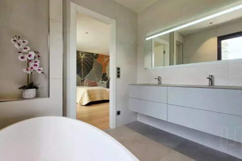 This contemporary villa, completed in 2022, offers an exceptional lifestyle where modern elegance meets the calm beauty of nature. Surrounded by lush greenery and opening onto sweeping views of the mountains, the property enjoys a peaceful setting while remaining just moments from local amenities.