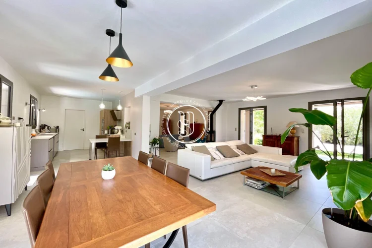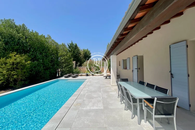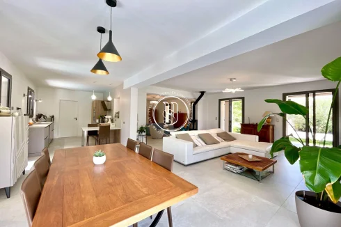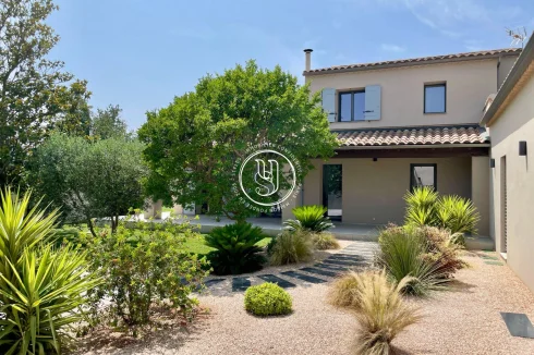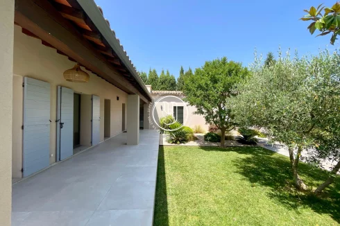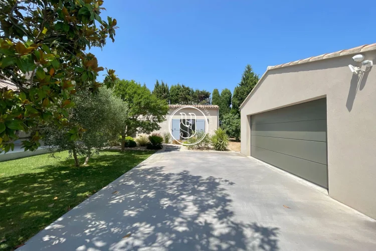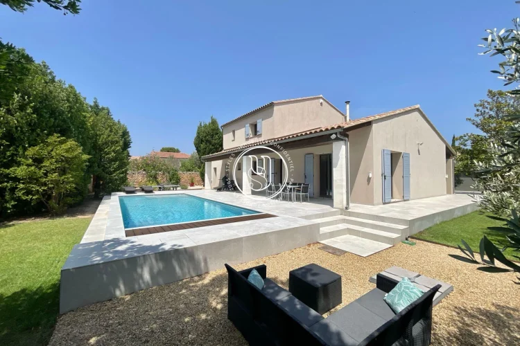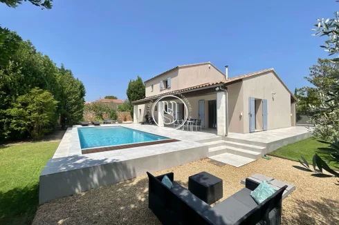 There are places where you instantly feel at home. Rare places, designed to host life& 39 s most beautiful moments. Just a three-minute walk from the vibrant heart of Maussane-les-Alpilles, with its lively terraces, refined shops, and gentle Provençal village rhythm, this house invites you to experience Provence differentlyin peace, elegance, and authenticity. Behind the automatic gate, a landscaped garden of over 1,500 m² envelops you in serenity. Stepping stones guide you through fruit trees, the vegetable garden, and Mediterranean flowerbeds, to the large terrace where time seems to slow down. The 11x4 meter swimming pool becomes, as soon as the weather is nice, the meeting point for summer naps, bursts of laughter with the family and mild evenings in the golden light of the Alpilles. The house, fully renovated in 2022, boasts approximately 220 m² of elegance and comfort. Inside, light flows freely into a warm double living room, enliened by a wood-burning stove that blends the seasons. The functional and contemporary kitchen opens onto a discreet utility room, while the dining room hosts long, convivial tables. A guest toilet, a laundry room and plenty of storage space complete your daily routine, with controlled discretion. Privacy is assured for the nighttime. A ground-floor master suite with a custom-made dressing room and bathroom offers a true cocoon, far from the hustle and bustle of the world. Three other bedrooms welcome guests or family, each with their own bathroom or shower, designed for everyone& 39 s comfort. The style is refined, the volumes harmonious, and the materials tastefully chosen. Nothing is left to chance. Behind this peaceful atmosphere lies cutting-edge technology: double-glazed, burglar-proof aluminum frames, reversible underfloor heating and ducted air conditioning by heat pump, interior and peripheral alarm system with video surveillance, automatic watering powered by canal water, and fiber internet connection to combine country life and teleworking without compromise. A double closed garage of 48 m², a technical room, a tool shed, a boiler room and even an outside toilet complete the whole for a practical and stress-free life. Ready to move in, this house asks for nothing more than to welcome you. It will appeal to those seeking the perfect balance between Provençal lifestyle, high-end amenities, and an exceptional location, just a stone& 39 s throw from the center of one of the most beautiful villages in the Alpilles.