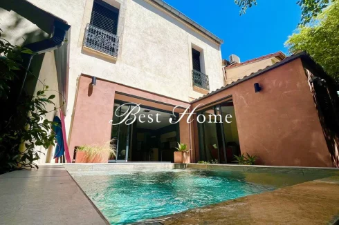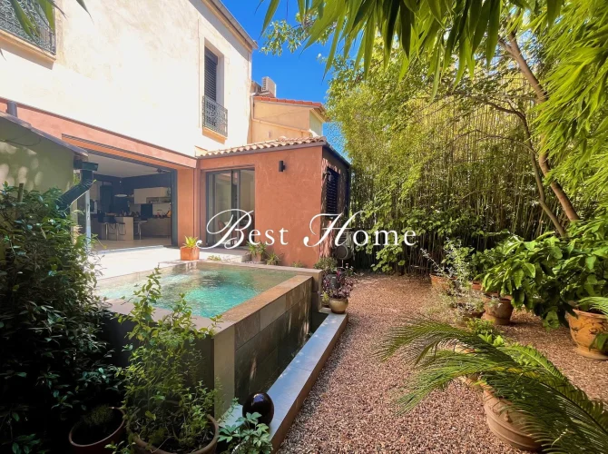 Favorite! Town house of 160m2 located in one of the most popular districts of Nîmes. A true haven of peace and quiet and ideally located a 12-minute walk from the city center. This town house from the beginning of the century has benefited from a quality renovation respectful of the past and the soul of the residence. With its lush garden hidden from view and its Roman infinity pool, watch out for love at first sight. It has a magnificent and spacious living room with living room opening onto the terrace and the garden, a beautiful, fully equipped high-end kitchen, 4 bedrooms, 2 bathrooms, cinema room, a large garage and a beautiful cellar. Quality services (Air conditioning, Pellet stove, burglar-proof double glazing, Bso shutters, Alarm, Fully equipped with home automation). Nîmes life par excellence. This property is presented by the Best Home Agency 6 Place Questel in Nimes. Tel: Email: contacest- Contact: Olivier Sauret on Commercial real estate agent registered with Rsac Nîmes no Information on the risks to which this property is exposed is available on the Géosphères website: Sales price including fees, payable by the seller.