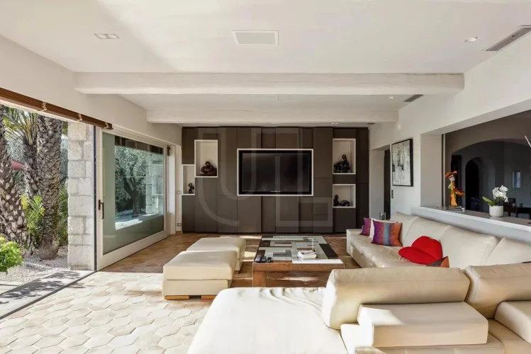 Outside is the landscaped garden, adorned with century-old olive trees and Mediterranean plants, creating a harmonious environment conducive to relaxation. There is a vast terrace, a beautiful heated swimming pool and a petanque court.