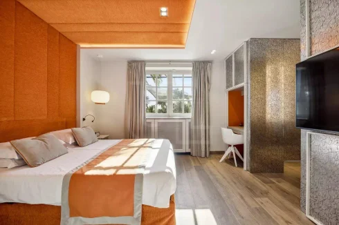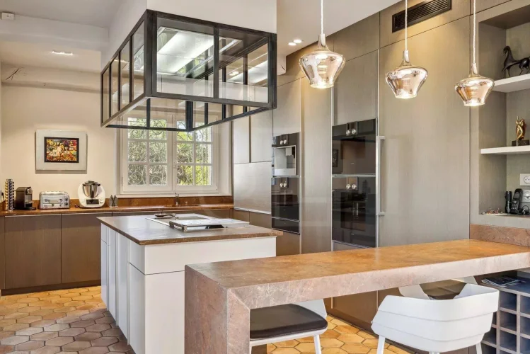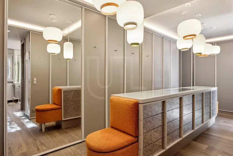 The 240 sq.m south west facing property offers a luxurious and refined living environment, combining functionality and aesthetics. The interior has been designed for comfort and elegance and comprises a 100 sq.m living room with large bay windows allowing in plenty of natural light, an equipped kitchen, a 50 sq.m master en suite bedroom with dressing room, 2 further bedrooms and an office. Additionally there is a basement offering a fully equipped gym, wine cellar and storage space.