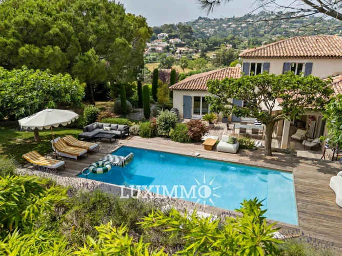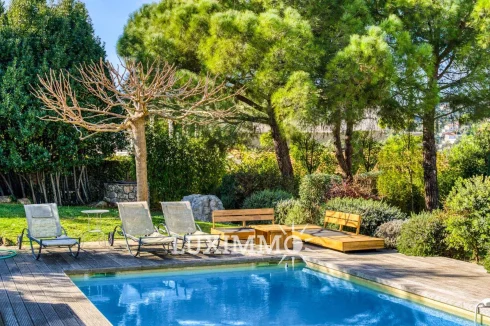 Mougins - Located in the heart of Mougins, in a gated, sought-after estate, this elegant villa with 235m² of living space is built on a plot of approx. 1942M² with swimming pool.