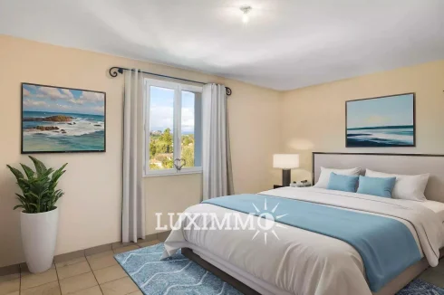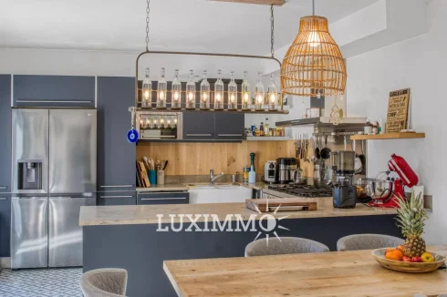 First floor: A large living room incorporating 1 fully-equipped kitchen, all opening onto the pool area. This level offers 2 bedrooms, one of which is a master with its own dressing room and bathroom.