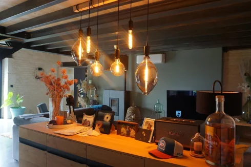 The frames are made of double-glazed aluminum. Heating is produced by two pellet stoves (living room and kitchen) and air-to-air heat pump.