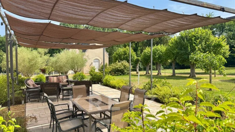 Deconsecrated chapel, heated swimming pool of 3mx10m with electric submerged shutter, semi-inground spa, terraces shaded by pergolas.