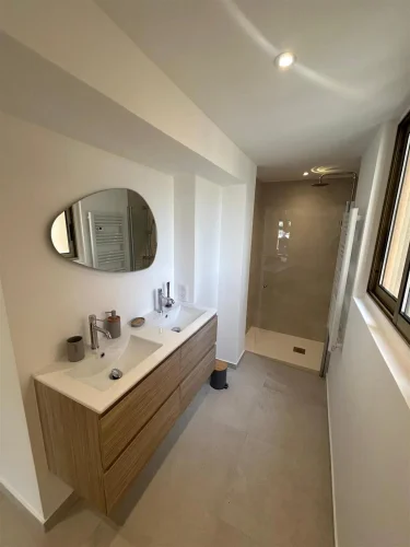 - A spacious and bright 45m² living room with an open-plan kitchen, opening onto a beautiful 11m² terrace and a balcony.