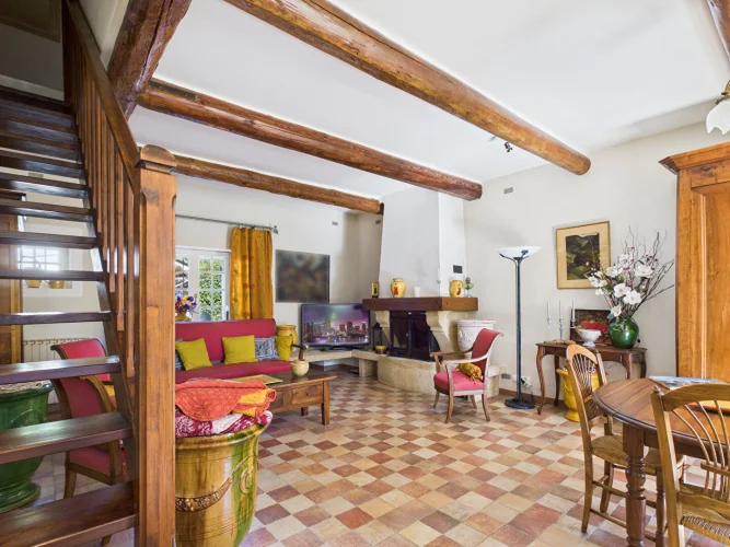 From the moment you enter, you'll be captivated by the charm and character of this typically Provençal property. The ground floor opens onto a spacious, bright 39 m² living room with direct access to a large terrace, ideal for outdoor dining. A separate fitted kitchen, a practical utility room, a shower room with WC, and two adjoining bedrooms complete this level.