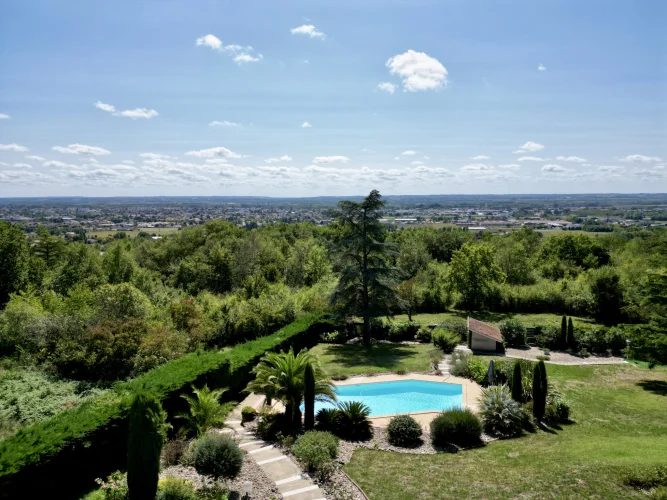 Perched on the gentle slopes, this splendid renovated residence enjoys a privileged setting with panoramic views over Marmande, just a few minutes from the town center. The property is conveniently located only an hour from Bordeaux, with the motorway and the Marmande train station within easy reach, offering excellent connections.