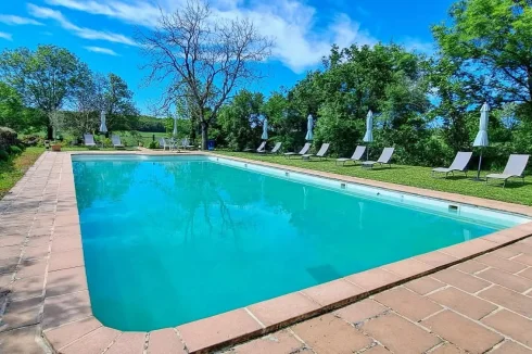 Swimming pool (15m x 7m) With steps at one end, this is a concrete pool and has a large terrace around the pool with flower borders Pool room at the entrance to the pool area.