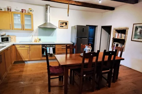 Unit 2 - (125m²) Fitted kitchen, original kitchen area (souillard), large living room with wood-burning stove and access to a large balcony with views of the gardens and swimming pool, 3 bedrooms and a shower room.